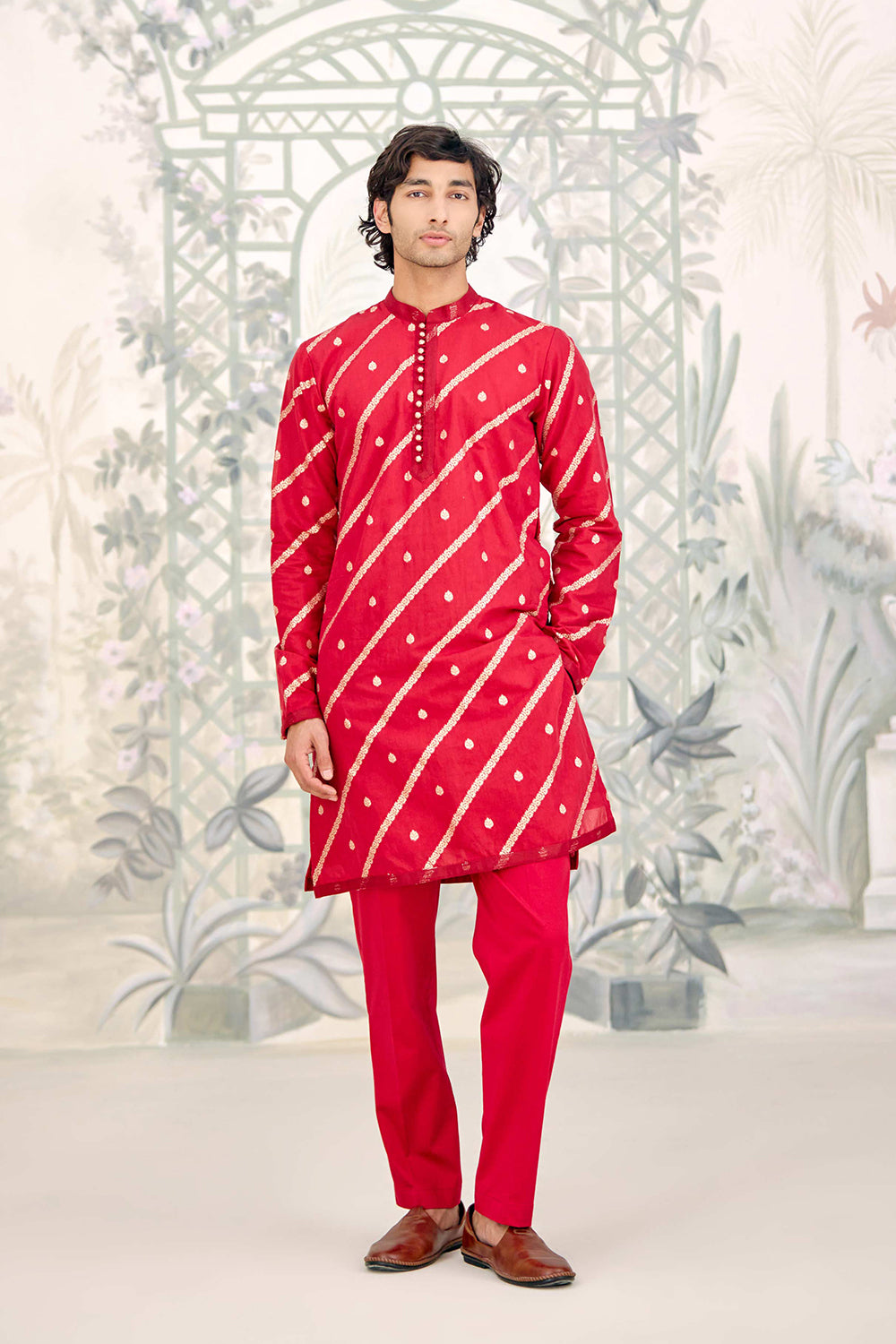 Chanderi brocade men's kurta set.