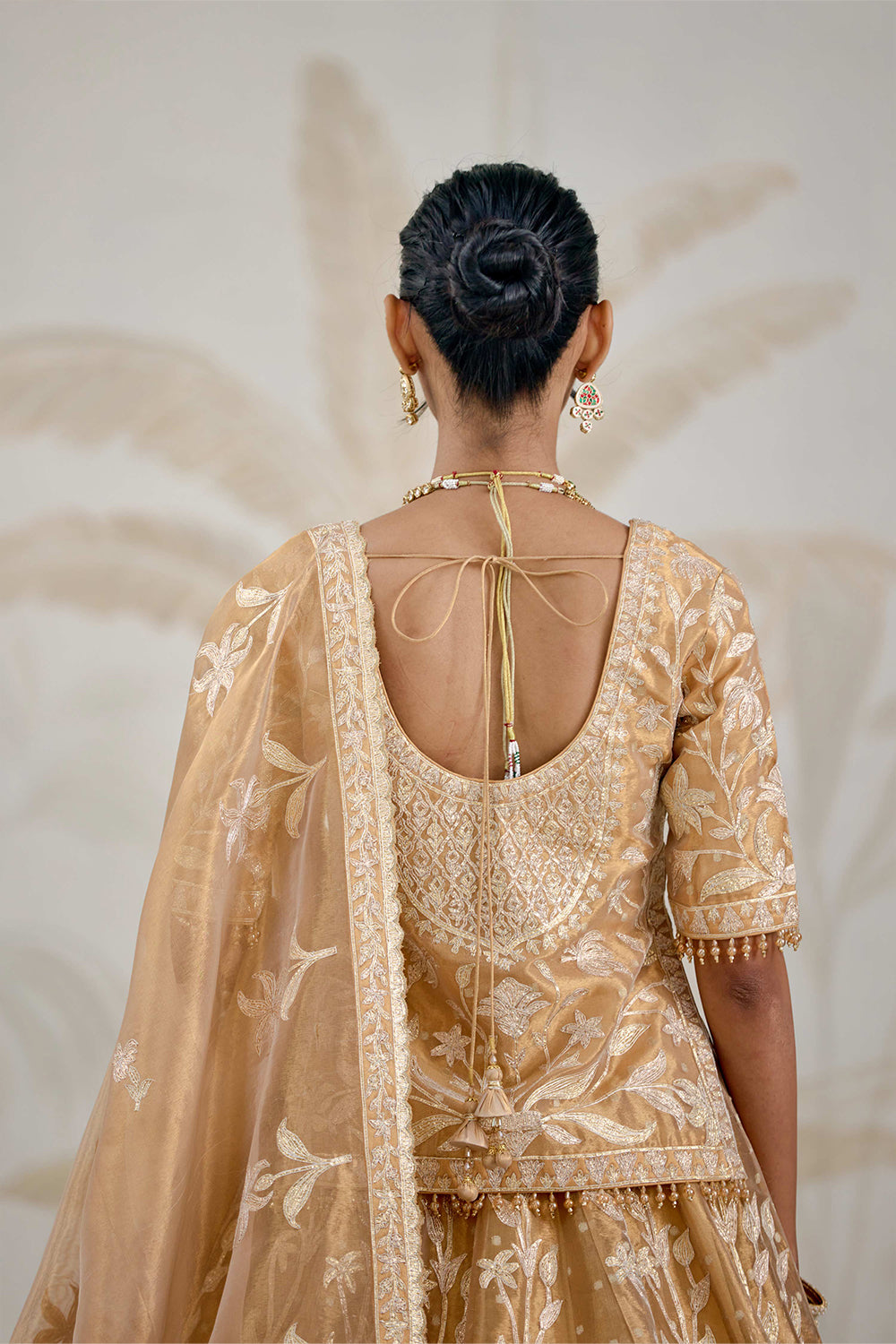 Gota embroidered tissue organza gold lehenga set.